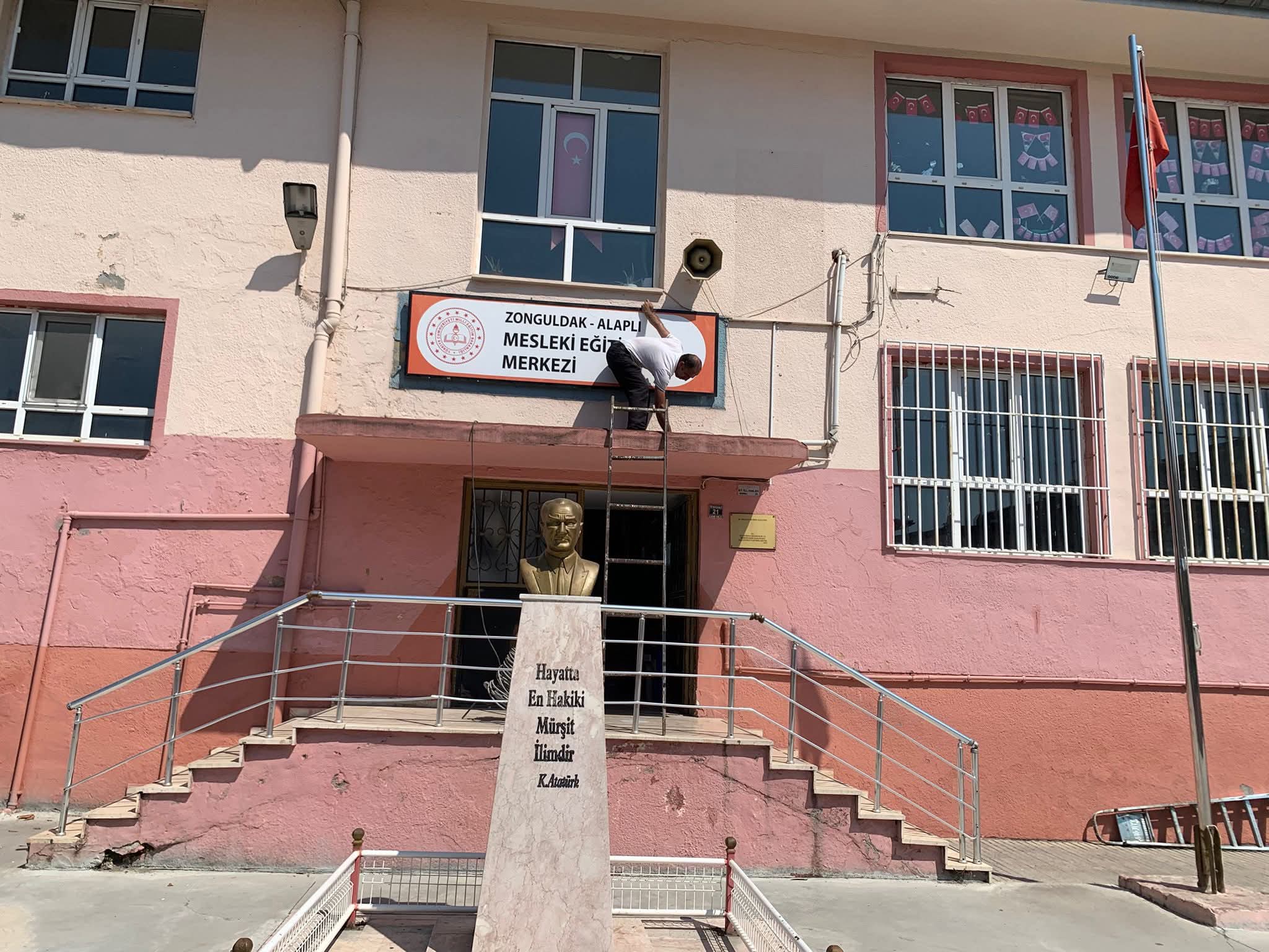 Alaplı İmam Hatip Ortaokulu da Alaplı Ahmet Zeki Atalay İlkokulunun 3 ve 4,ncü katında eğitim öğretim yapacak. Sanayi sitesinde hizmet veren Alaplı Mesleki Eğitim Merkezi okulumuzu da Eski Atalay Lisesine taşındık. Tüm camiamıza 2025 2026 Eğitim Öğretim yılı yeni okulları ile hayırlı olsun.’