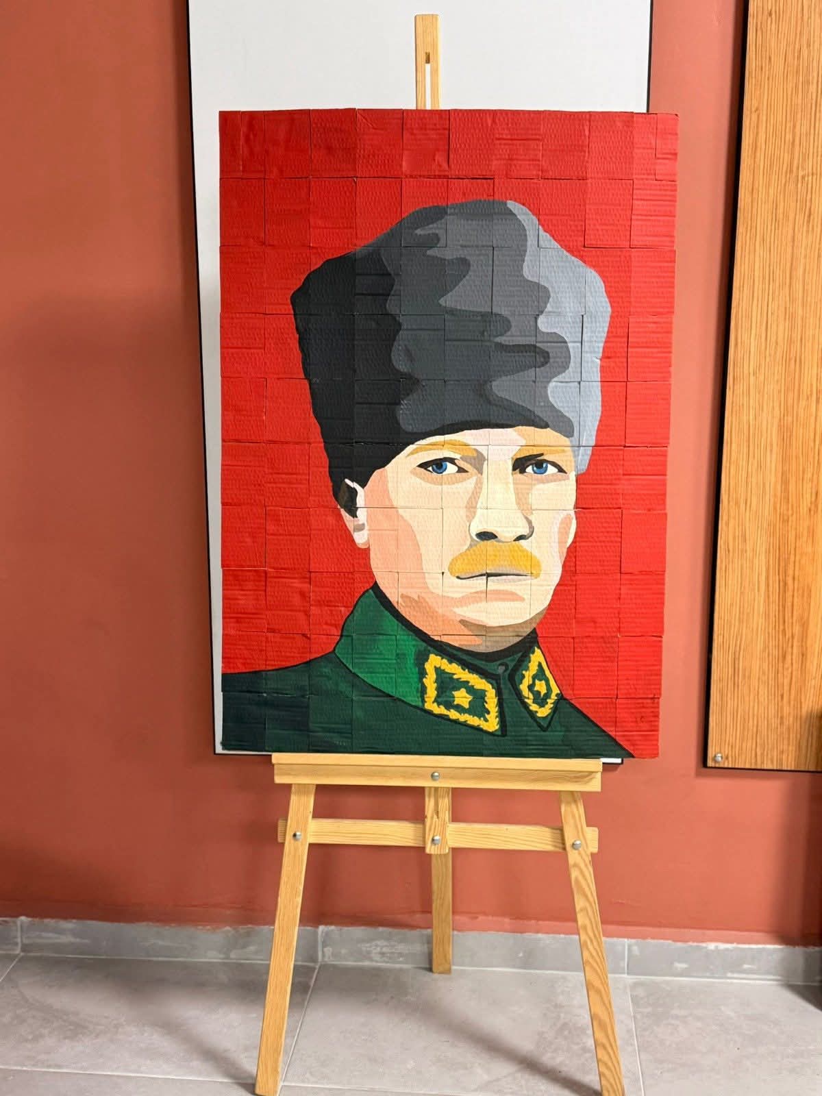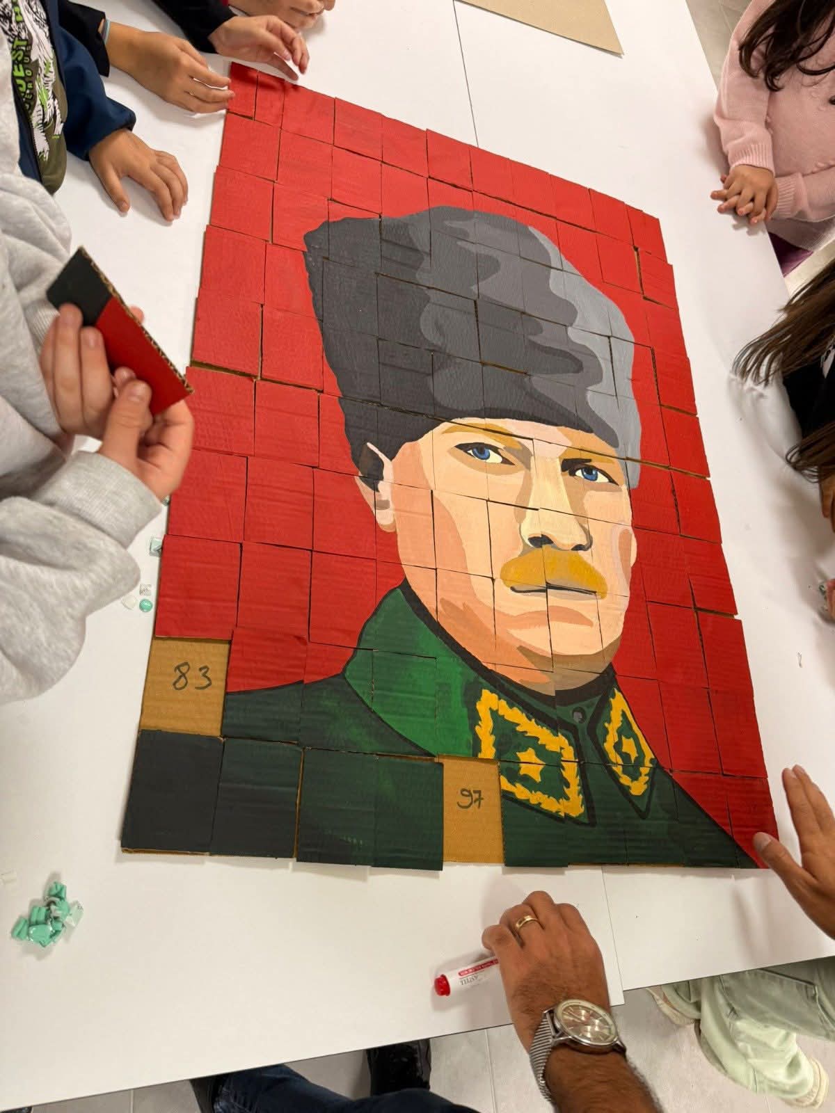 Tüm öğrencilerin heyecan ve coşkuyla katıldığı etkinliğin sonunda Gazi Mustafa Kemal Atatürk’ün portresi 102 parça hâlinde birleşerek güzel bir tablo haline geldi.