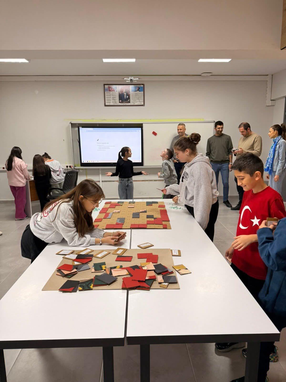 29 Ekim Cumhuriyet Bayramı kutlamaları kapsamında düzenlenen etkinlikte, öğretmen ve idarecilerin bilim ve sanat alanlarından hazırladığı 102 adet soru, Atatürk Portresinin parçalarıyla eşleştirildi. Öğrenciler, her bir soruyu doğru yanıtladıklarında, karşılık gelen parçayı tabloya yerleştirerek Atatürk’ün portresini adım adım tamamladılar.