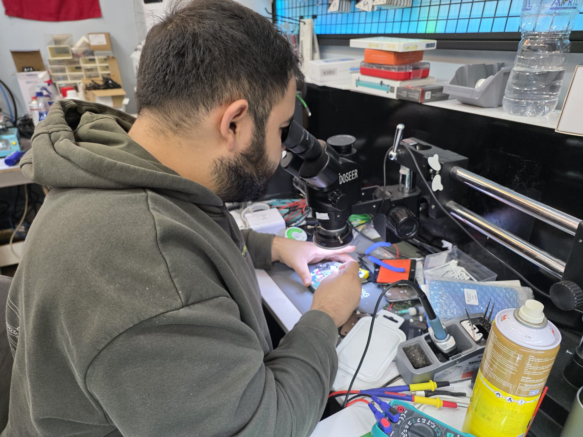 İşyerini geçtiğimiz Şubat ayında ilçeye bağlı Rampalı Çarşı üçüncü kat no: 61’de açtığına dikkat çeken Yiğit, “Her türlü telefon, tablet teknik servis hizmeti veriyoruz. 15 yıldır bu sektördeyim. İstanbul’da uzun yıllar bu işi yaptım ve memleletim Alaplı’ya geldim. Aslen Kıran köyündenim. Ekran, batarya, ön cam, arka cam, dokunmatik, şarj soketi, tablet tamiri, bakım onarım, aksesuar işleri yapıyorum. Kasım ayına özel şarj aleti, powerbank, araç şarj aleti, bluetooth kulaklık ve hopörlerlerde yüzde 30 indirim yaptık. Tüm bölge ve Alaplı halkını işyerimize çay içmeye bekliyoruz.” dedi.