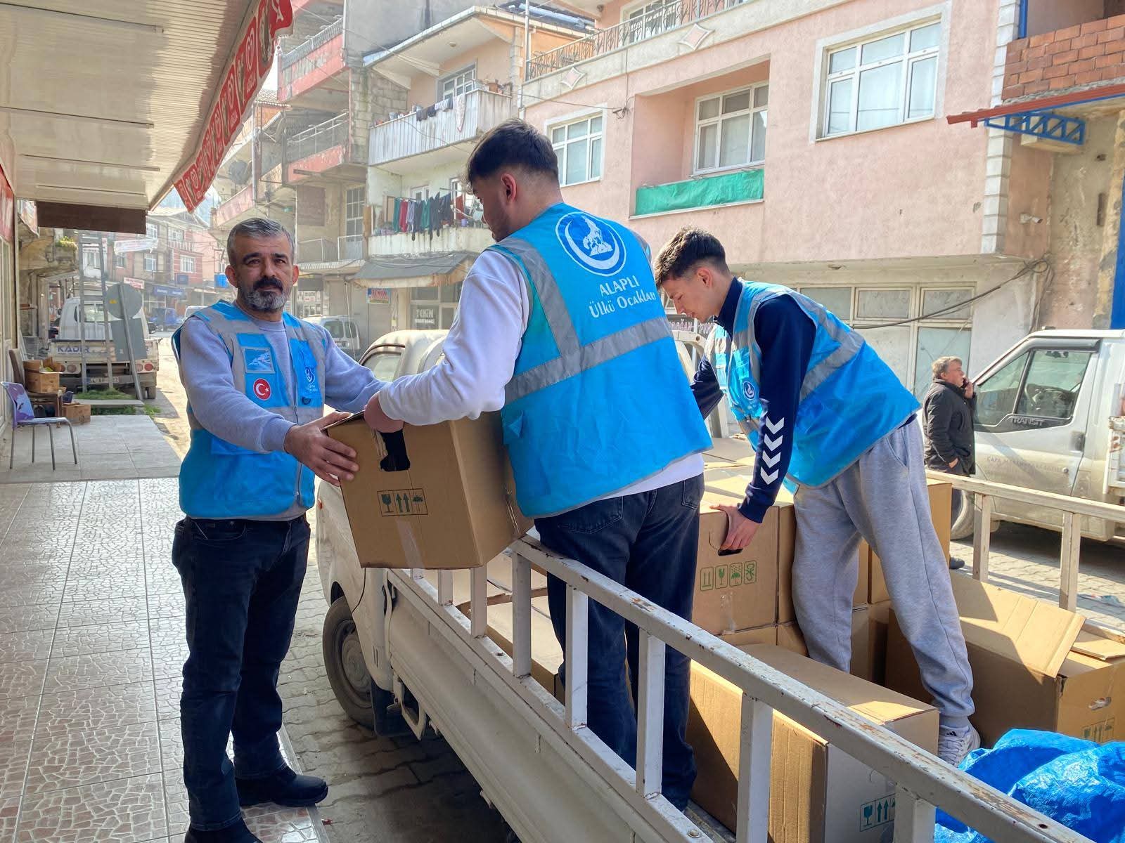 Alaplı Ülkü Ocakları Başkanlığının dağıttığı yardım kolileri yüzleri güldürdü.