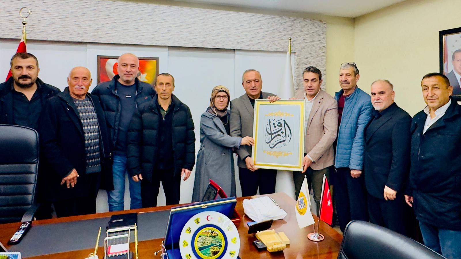 Konuşmaların ardından Ören, Uzun’a Alaplı fındığı, Alaplı Belediyesi şilti, elvefa ifadeli tablo ile teşekkür plaketi takdim etti.