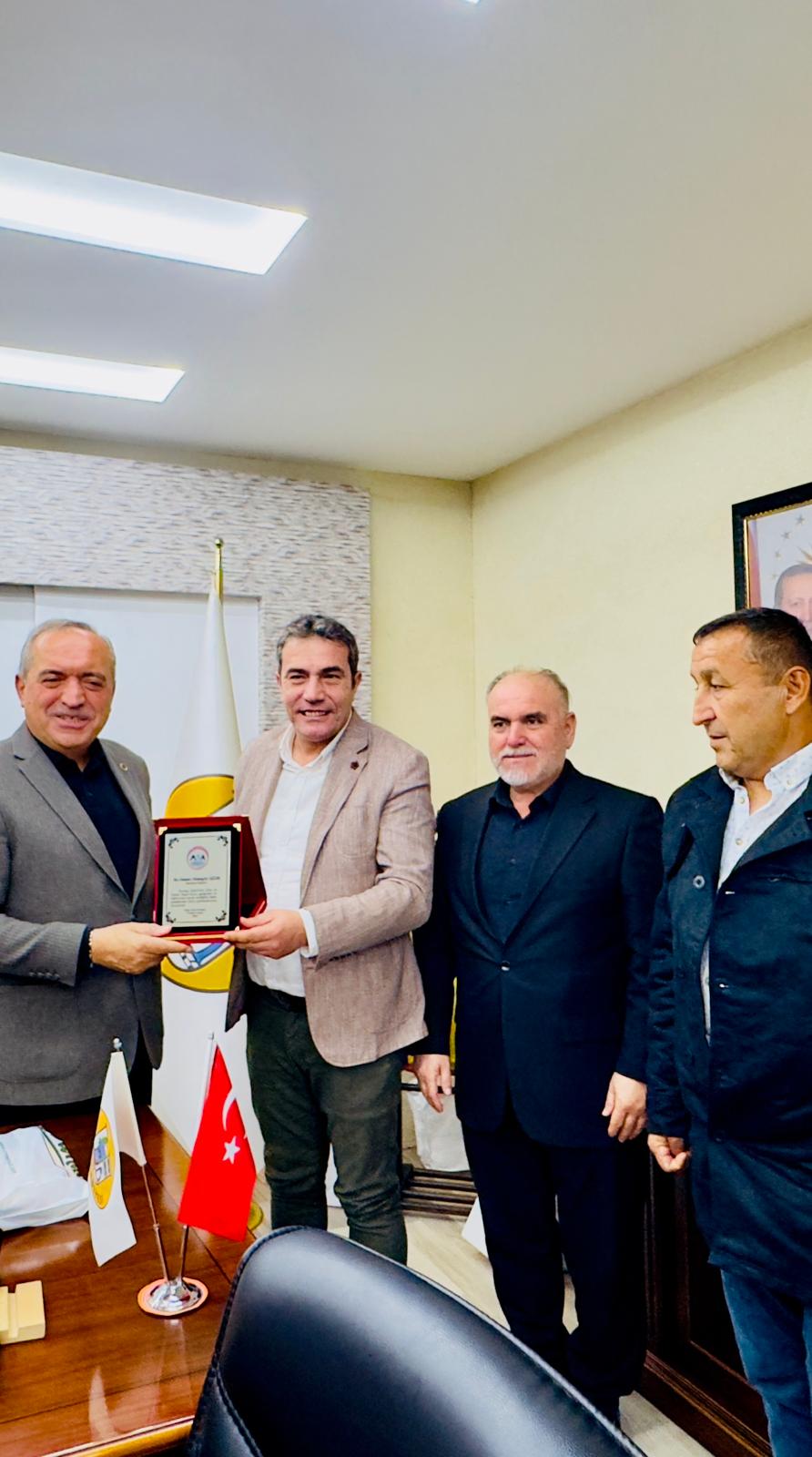 Konuşmaların ardından Ören, Uzun’a Alaplı fındığı, Alaplı Belediyesi şilti, elvefa ifadeli tablo ile teşekkür plaketi takdim etti.